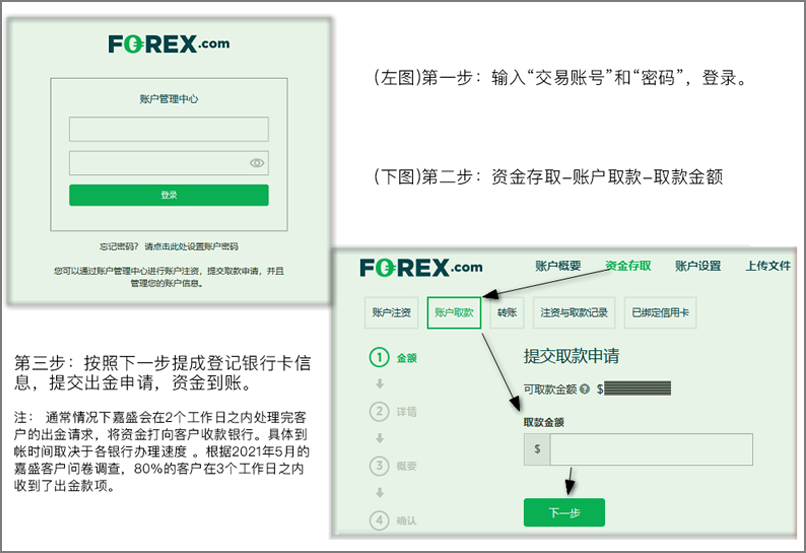 嘉盛FOREX集团深知出金对客户的重要性,并始终致力于为您提供安全、迅速、高质的取款体验。