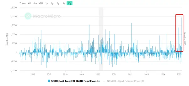 SPDR Gold Trust黄金ETF资金流向 来源:Macromicro